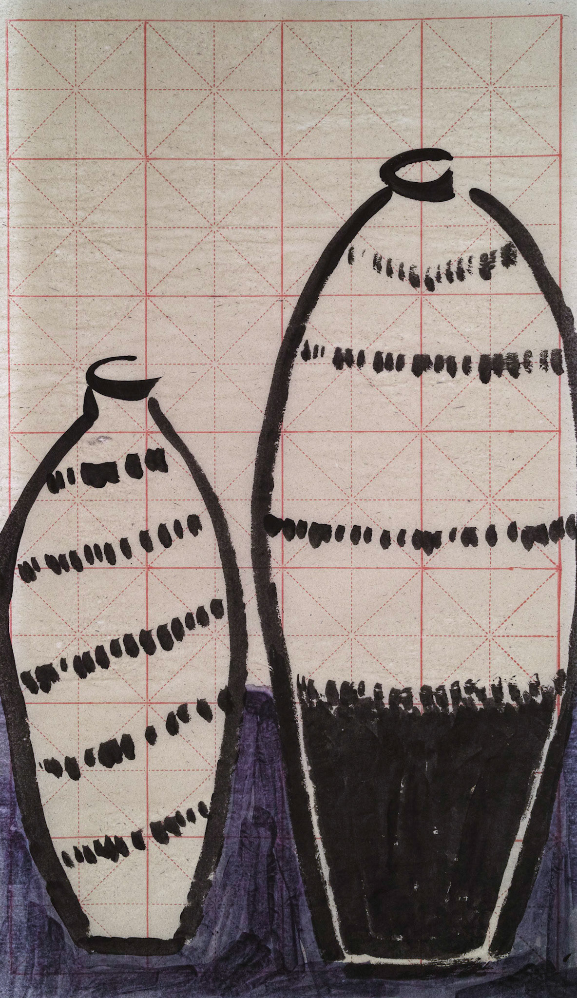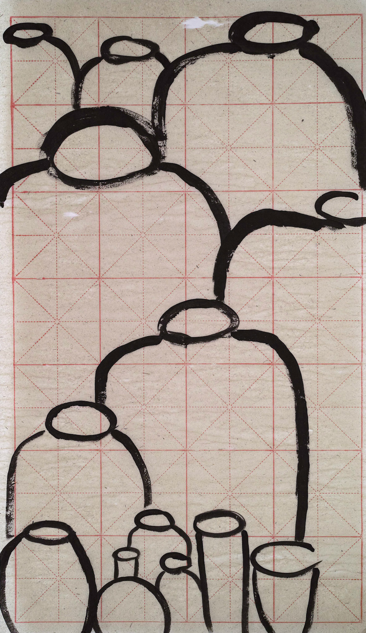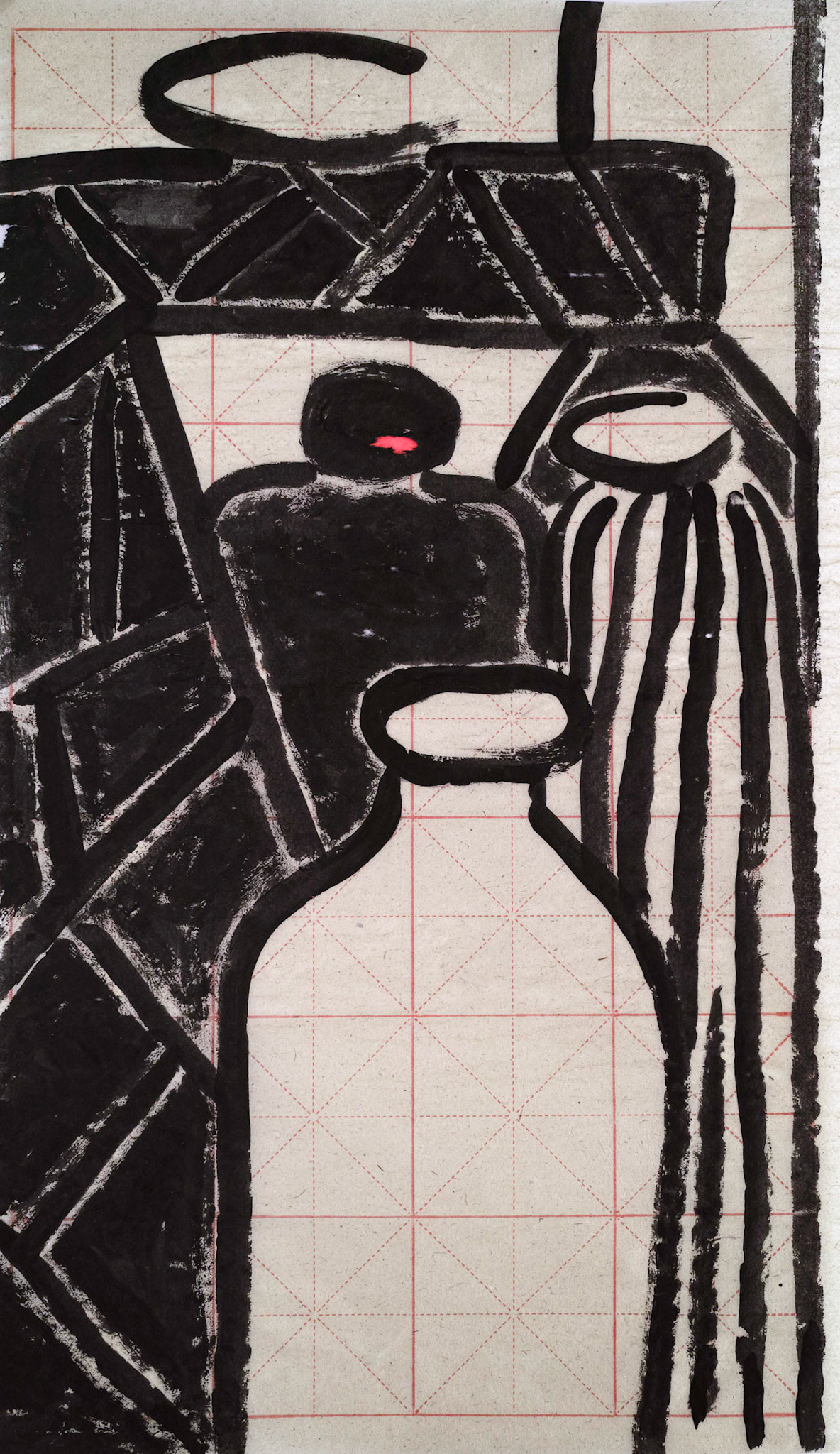65/38 cm. Gouache et encre de Chine sur papier pour apprentissage de la calligraphie.
