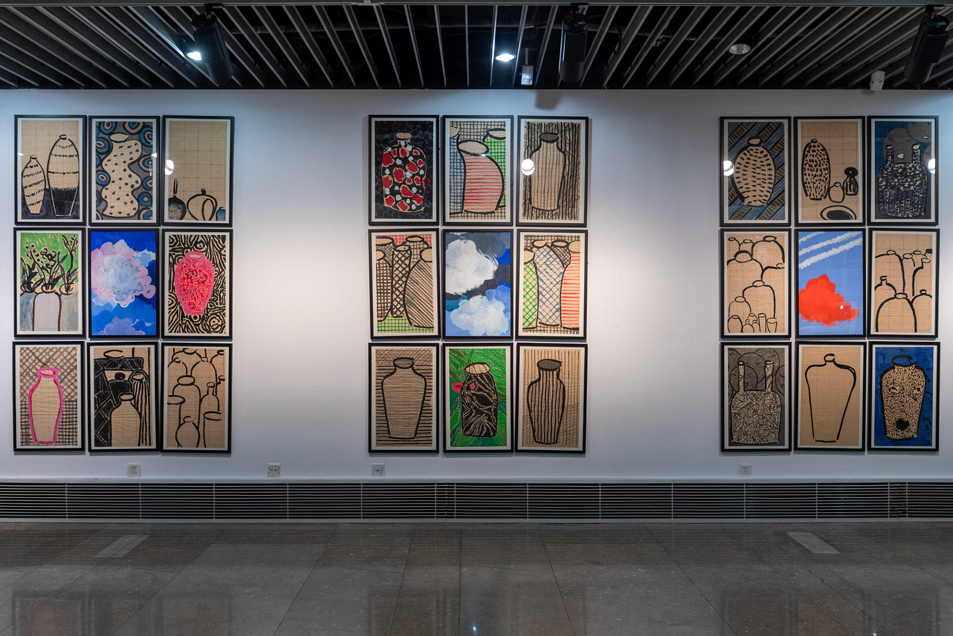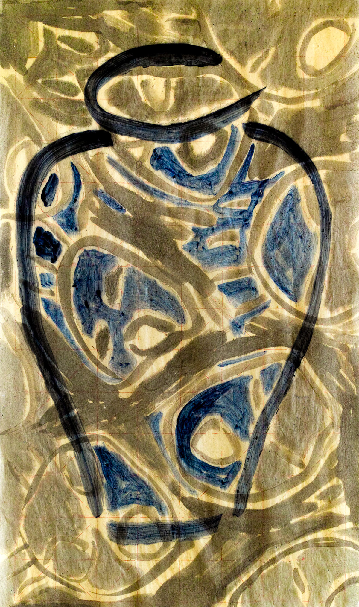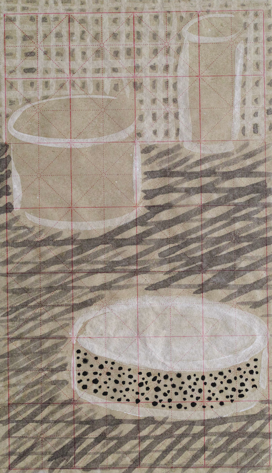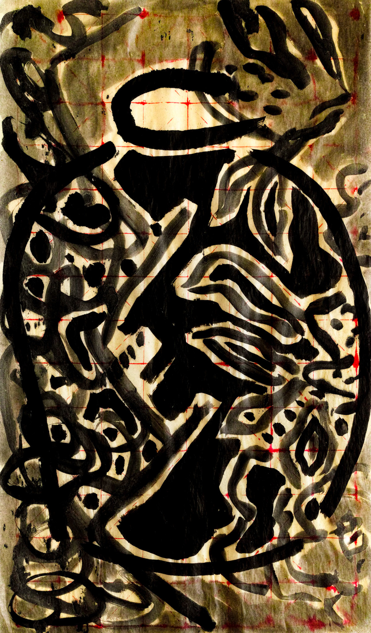 65/38 cm. Gouache et encre de Chine sur papier pour apprentissage de la calligraphie.